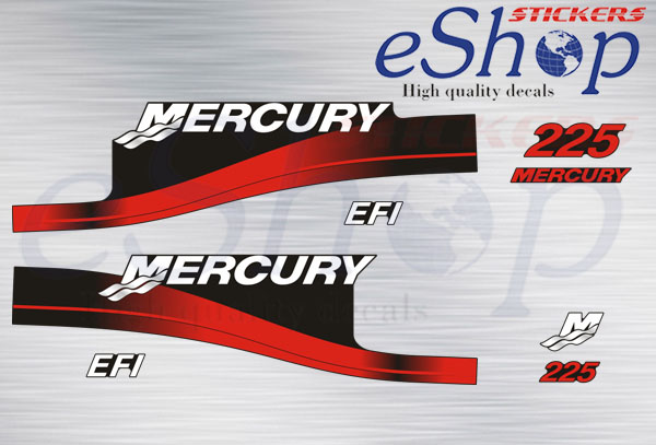 Πλήρες σετ custom αυτοκόλλητα εξωλέμβιας Mercury 225 Hp EFI δίχρονη 1999 2006 έκδοση κόκκινη