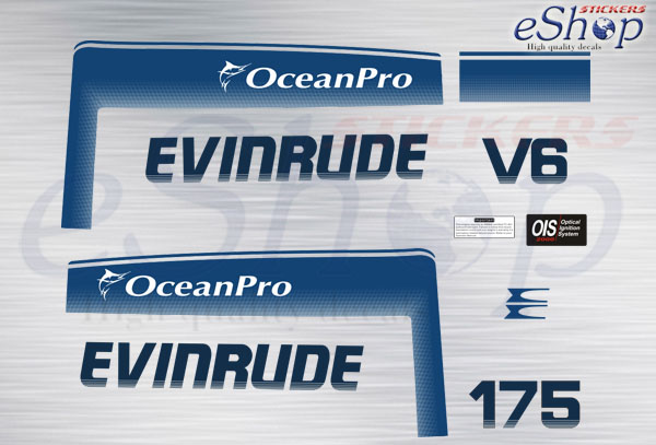 Πλήρες σετ αυτοκόλλητα εξωλέμβιας Evinrude 175 Hp Δίχρονης Ocean Pro έκδοση 1993 1998