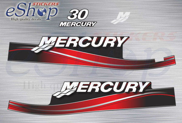 Πλήρες σετ custom αυτοκόλλητα εξωλέμβιας Mercury 30 Hp (δικύλινδρη) δίχρονη 2004 2006